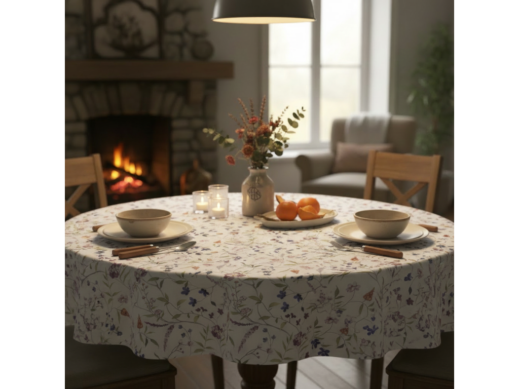 Obrusy z našich bavlnených dekoračných látok sú tkané žakarovou technológiou (Jacquard), sú potlačené rotačnou alebo digitálnou potlačou. Obrus by mal cez stôl prevísať približne o 20 cm. Pre správne stanovenie rozmeru obrusu vám odporúčame k obom rozmerom stola pripočítať 40 cm.