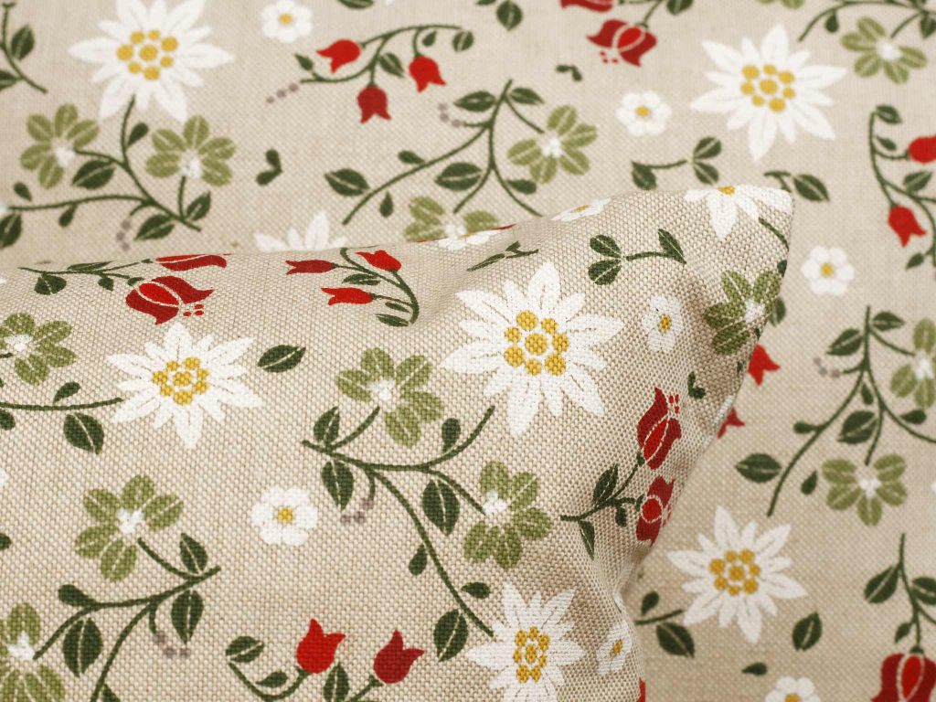 Povlaky na polštáře z našich bavlněných dekoračních látek jsou tkané žakárovou technologií (Jacquard), potištěné rotačním nebo digitálním potiskem. Látky s příměsí polyesteru mají mnohem nižší mačkavost a jsou snadno žehlitelné.