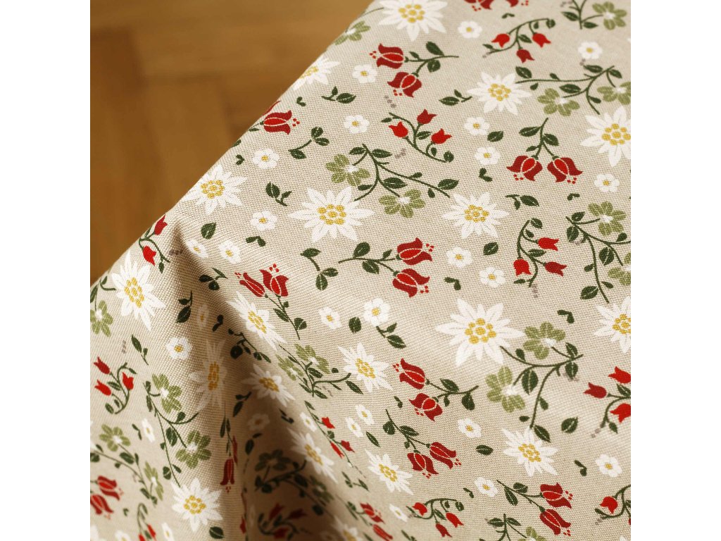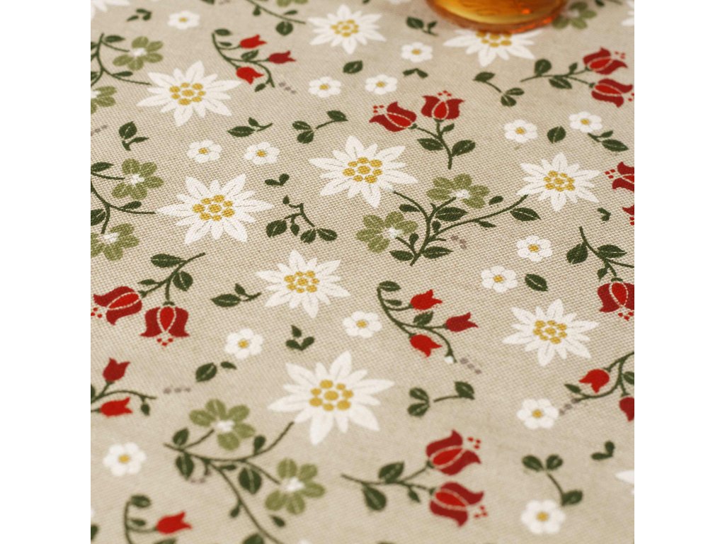 Die Stoffe für die Tischdecken sind gewebt mit einer Jacquardtechnologie, bedrückt mit rotations oder digitalem Aufdruck. Die Stoffe mit Zugabe von Polyester sind weniger anfälig für Falten.