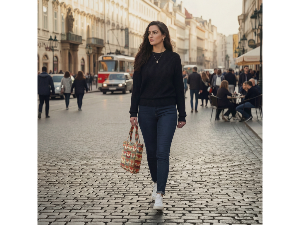 Die Handtasche ist leicht, platzsparend und eine umweltfreundliche Alternative zu Einwegtragetaschen. Sie eignet sich auch ideal als Geschenk.