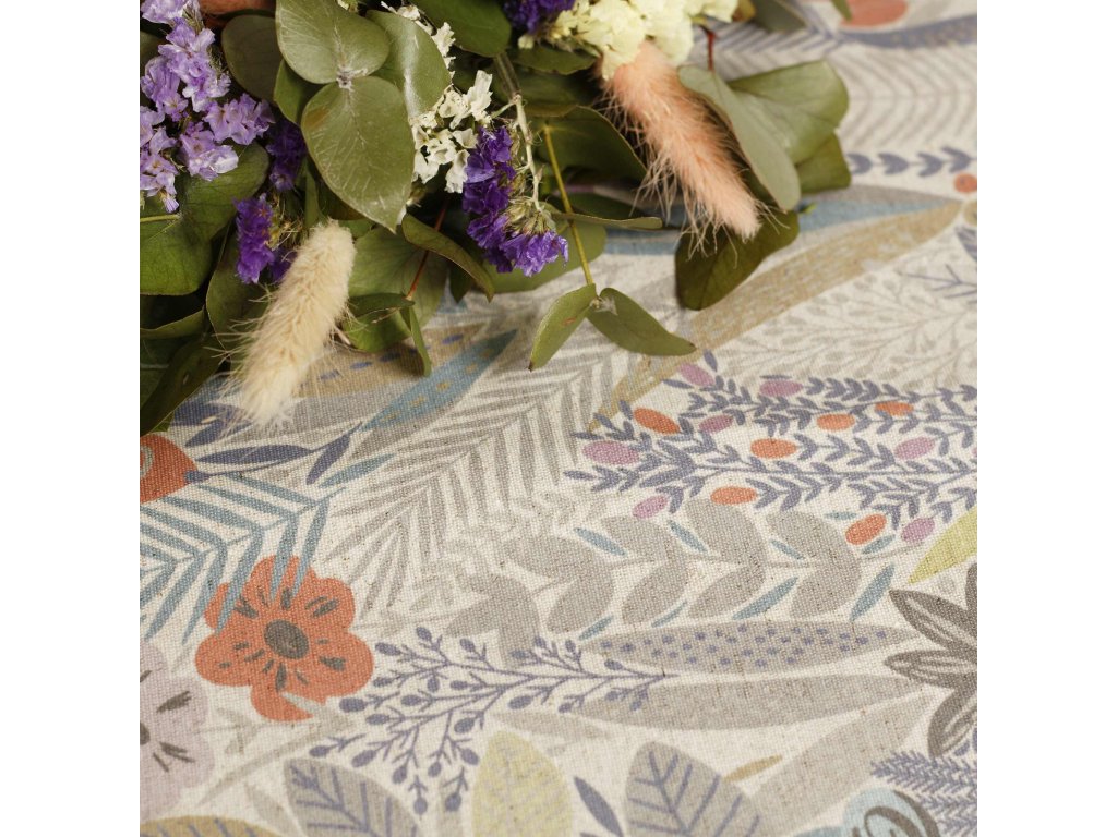 Die Tischdecken aus Stoffen mit Zusammensetzung 50% Baumwolle, 50% Acryl sind beschichtet und modifiziert mit Acryltechnologie. Diese Stoffe kann man leicht reinigen mit einem nassem Schwamm.