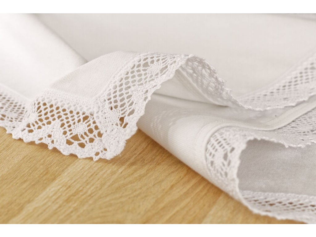 Tischläufer - Weiß mit weißer Spitze