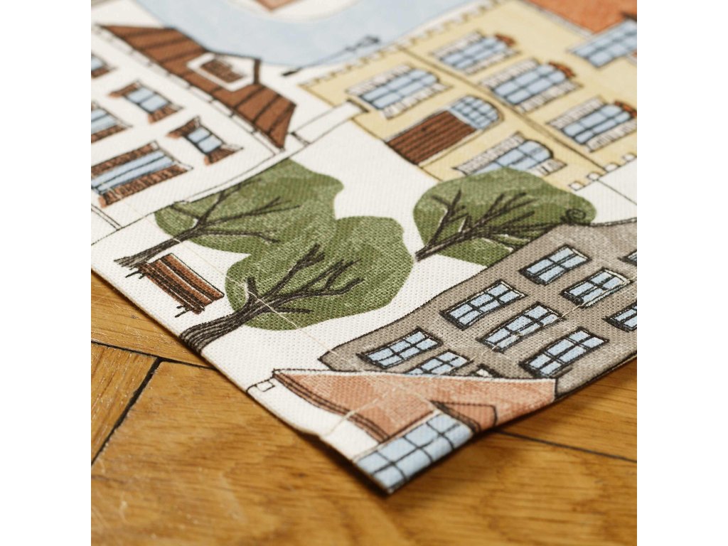 Die Stoffe für die Tischsets sind gewebt mit einer Jacquardtechnologie, bedrückt mit rotations- oder digitalem Aufdruck. Die Stoffe mit Zugabe von Polyester sind weniger anfällig für Falten.