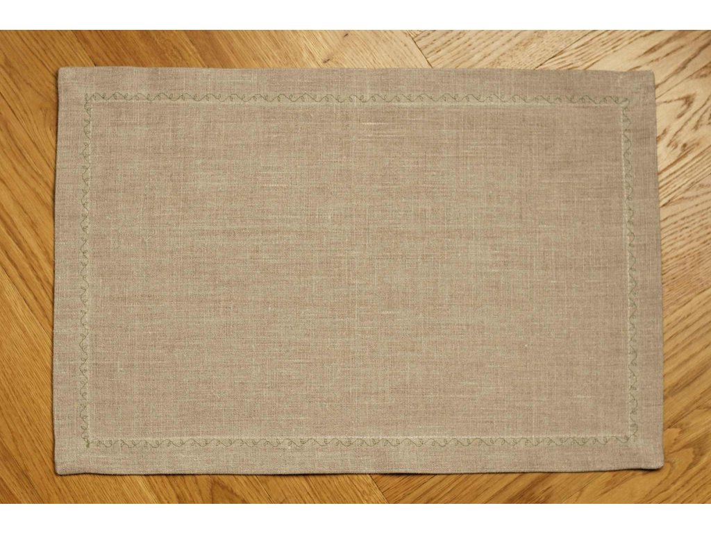 Tischsets 2er Set - Gewaschener grauer Leinen mit grüner Stickerei