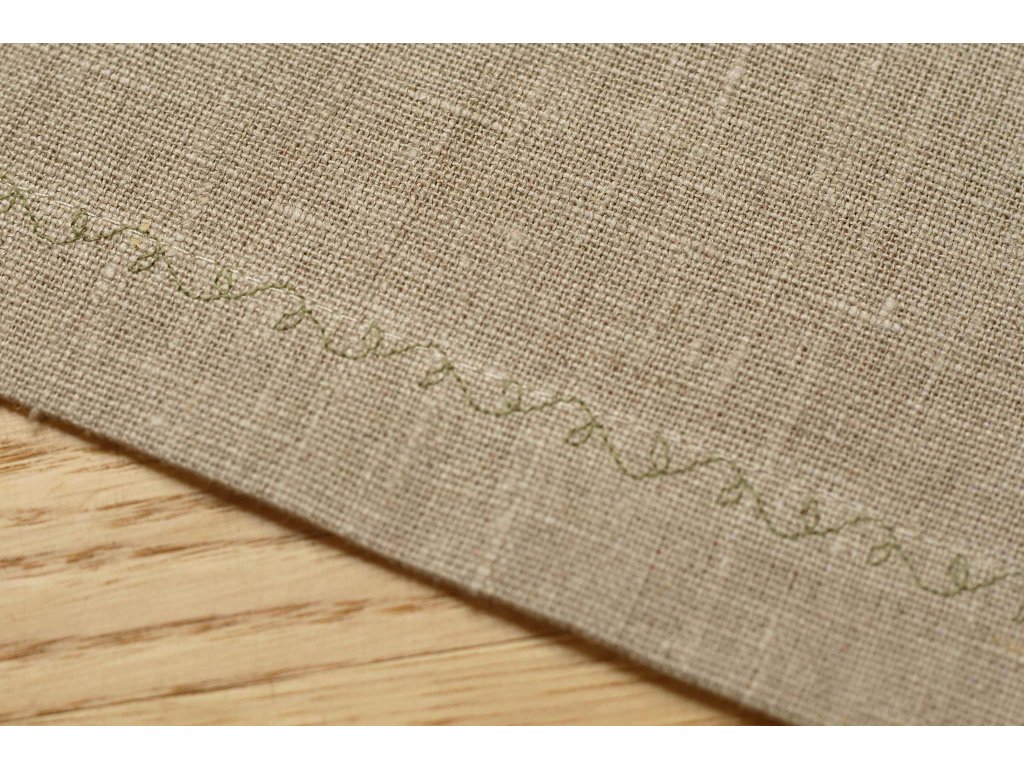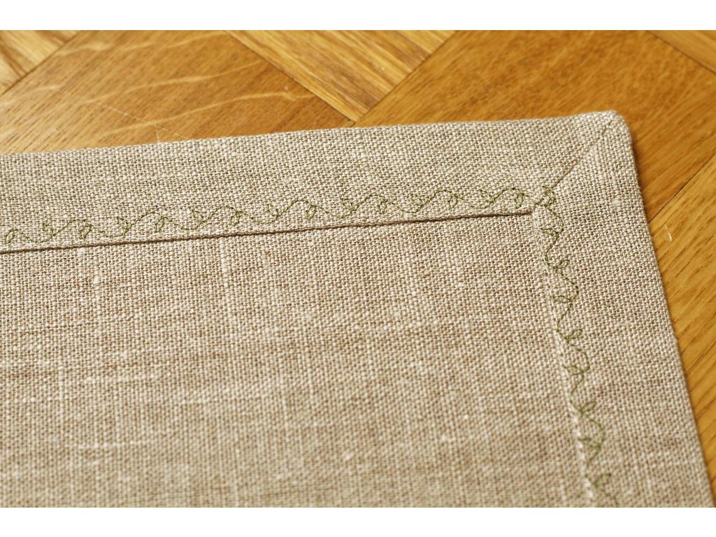 Tischsets 2er Set - Gewaschener grauer Leinen mit grüner Stickerei