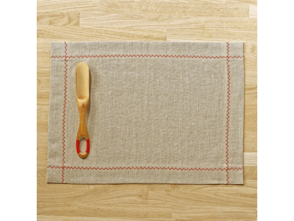 Tischsets 2er Set - Gewaschener grauer Leinen mit roter Stickerei