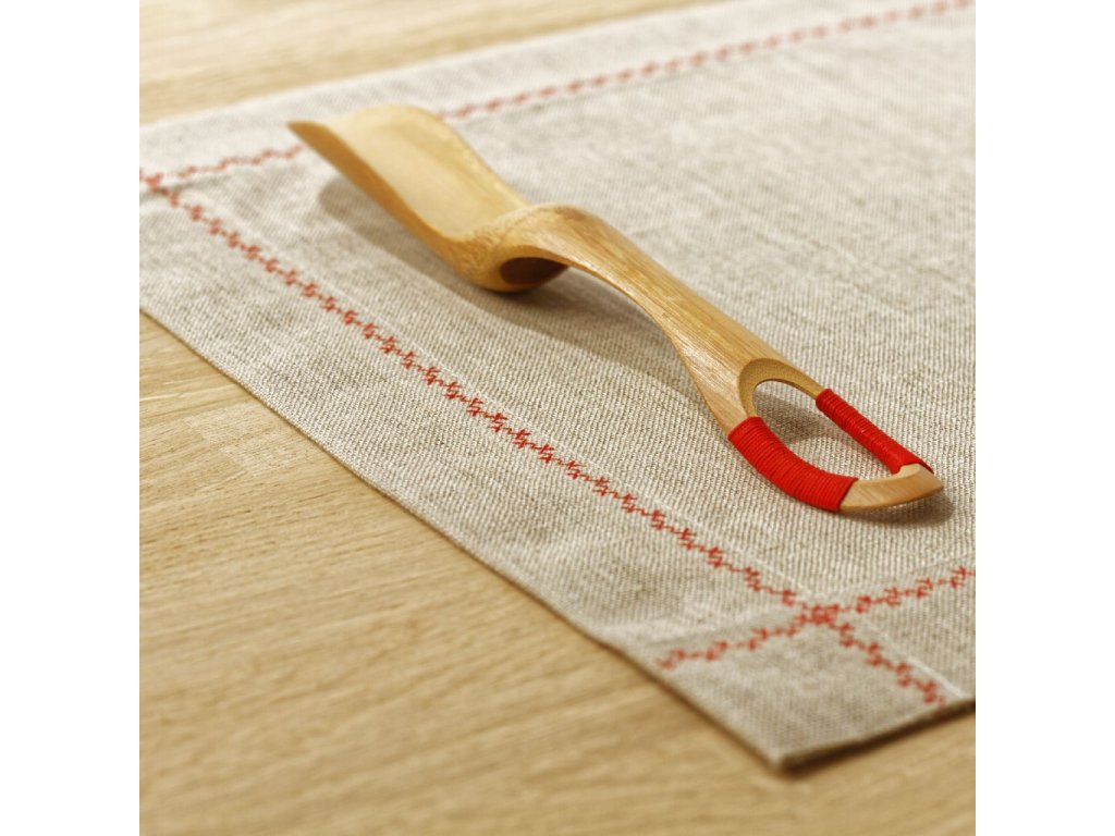 Tischsets 2er Set - Gewaschener grauer Leinen mit roter Stickerei