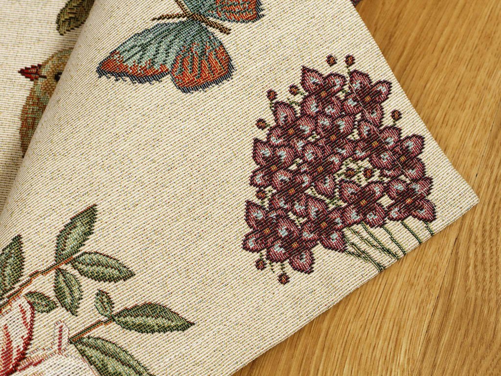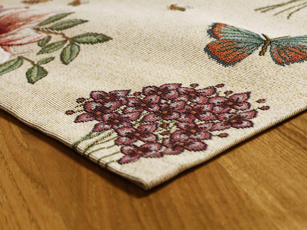Die Stoffe für die Tischsets sind gewebt mit einer Jacquardtechnologie, bedrückt mit rotations- oder digitalem Aufdruck. Die Stoffe mit Zugabe von Polyester sind weniger anfällig für Falten.