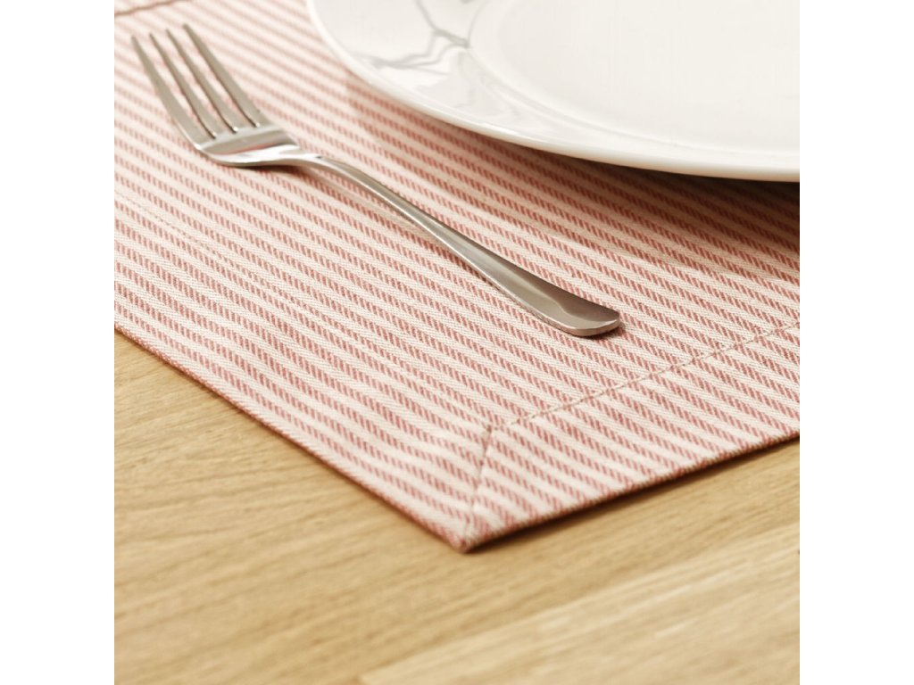 Die Stoffe für die Tischsets sind gewebt mit einer Jacquardtechnologie, bedrückt mit rotations- oder digitalem Aufdruck. Die Stoffe mit Zugabe von Polyester sind weniger anfällig für Falten.