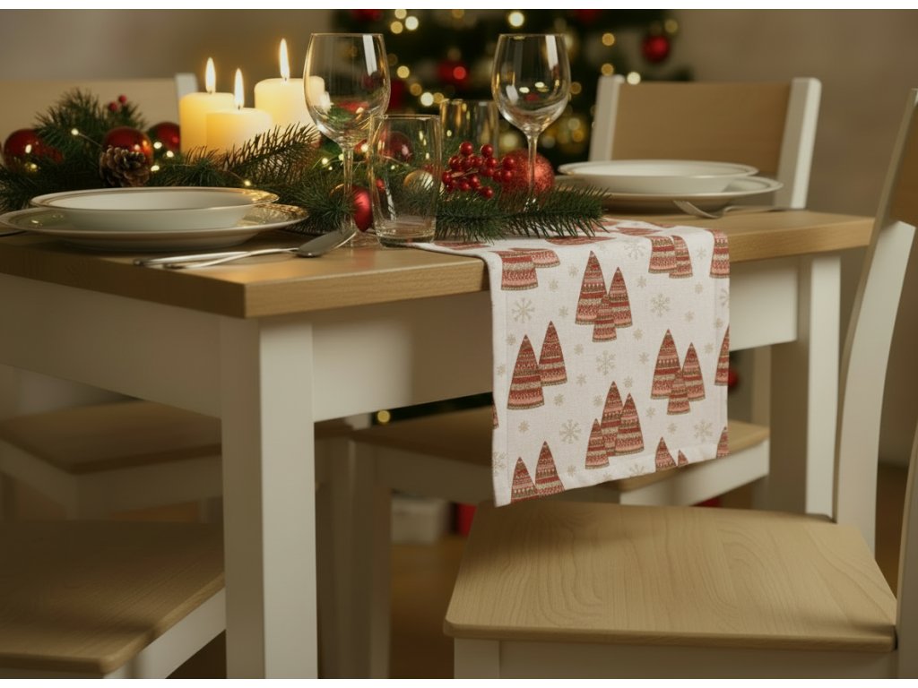 Vianočný behúň na stôl - Candlelight white