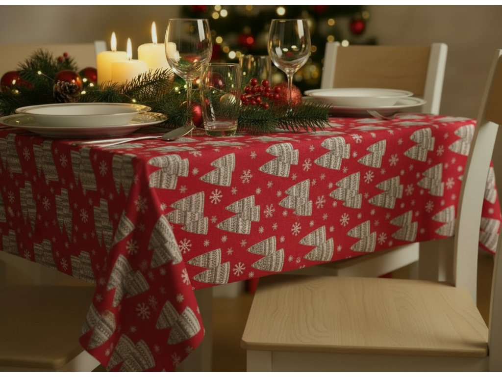 Vianočný obrus - Candlelight red
